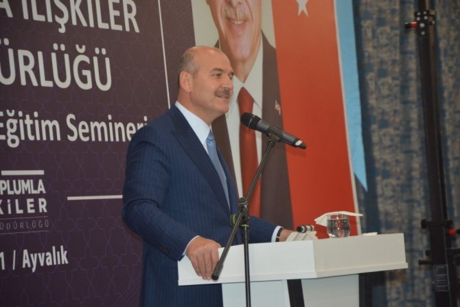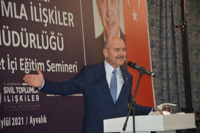 İçişleri Bakanı Süleyman Soylu, Sivil Toplumla İlişkiler Genel Müdürlüğü Merkez ve Taşra Teşkilatı Hizmet içi Eğitim Semineri'ne katılmak üzere Balıkesir'in Ayvalık ilçesine geldi.