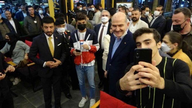 Renkli görüntülerin yaşanmasına neden olan ve bir süre Kitapçı ile sohbet eden Bakan Soylu, karşılaştığı vatandaşlarla fotoğraf çektirerek ardından Millet Kıraathanesi'nde gençlerle görüştü, sohbet ettiği gençlerin sorularını da yanıtladı.