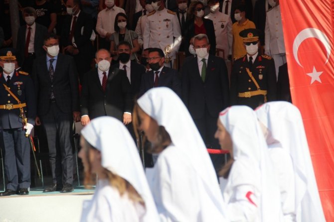 Tören sonunda Türk Hava Kuvvetlerinin akrobasi timi Türk Yıldızları'nın Dumlupınar semalarındaki gösterisi nefes kesti.