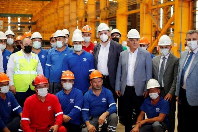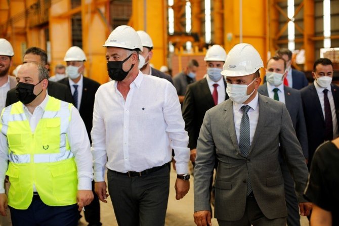 Yalova'nın Altınova ilçesindeki tersaneler bölgesini gezen Sanayi ve Teknoloji Bakanı Mustafa Varank, inşa edilen dünyanın en büyük canlı balık taşıma gemisinin omurgasına da ilk kaynağı yaptı.