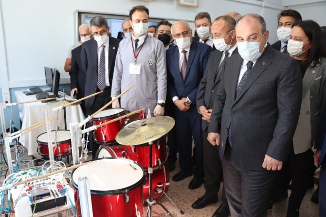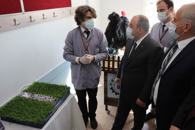 Denizli’ye bir ziyaret için gelen Sanayi ve Teknoloji Bakanı Mustafa Varank, ziyaretler kapsamında Denizli Organize Sanayi Bölgesi Teknik Lisesinde incelemelerde bulundu. Geleceğin mühendislerinin ürettiği teknolojik aletleri inceleyen Bakan Varank, sensörlü piyanoyu kullandı. Okul tarafından üretilen dezenfektan cihazları ve maske üretim kısmında incelemelerde bulunan Bakan Varank, daha sonra özel dokuma tezgahlarının oluşturduğu atölyeyi gezdi. Tasarım atölyesinde öğrenciler ile kısa sohbet eden Bakan Varank, tasarım atölyesindeki öğretmen ile arasındaki diyalog komik anlara neden oldu.