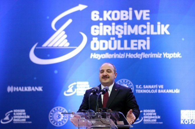 Sanayi ve Teknoloji Bakanı Mustafa Varank, Ankara’da KOSGEB Başkanlık binasında düzenlenen “6. KOBİ ve Girişimcilik Ödülleri” törenine katıldı. Törende konuşan Bakan Varank, "Ülkemizin başarılı KOBİ ve girişimcilerini ödüllendirerek farkındalığı arttırmanın ve işletmelerimizi teşvik etmenin mutluluğu içerisindeyiz. Bugün iki kategoride toplam 7 ödül takdim edeceğiz. Finalist olarak aramızda bulunan ve ülkemizin kalkınmasına katkı sağlayan herkese teşekkür ediyor, hepsini kutluyorum" diye konuştu.