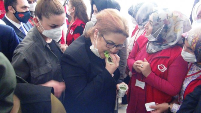 Yapılan açıklamaların ardından Bakan Yanık, açılışını yaptığı kadın kooperatifleri sergisini gezdi, kadınların yaptığı çiğköfteden yedi.