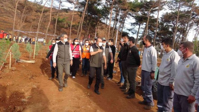 Tarım ve Orman Bakan Yardımcısı Fatih Metin, Muğla'nın Marmaris ilçesinde geçtiğimiz aylarda çıkan orman yangınlarında hayıtını kaybeden orman işçisi Görkem Hasdemir ve Şahin Akdemir anısına oluşturulan hatıra ormanlarında fidan dikim etkinliğine katıldı.