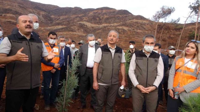 "İki şehidimizin isminin buraya verilmesinin ayrı bir anlamı var. Mavi ile yeşili tekrar bütün değiştirmek için söz verdik. Malum gerek yangın esnasında gerek sonrasında bazı laflar üzüm yemekten ziyade bağcıyı dövmek derdinde olan, devamlı yalan ve iftira üzerine siyaset yapmak isteyen bir takım güruhlar ne yazık ki yalan yanlış şeylerle vatandaşın kafasını karıştırdı. Halbuki Anayasa'nın 169'uncu maddesi çok açık. Ormanların korunması dışında yanan ormanlar ile ilgili özel bir ifade var. Dolayısıyla bu da önemli bir mesaj olacaktır. Deniz kenarındaki en güzel alanları çalışmalarımız kapsamında fidanla buluşturuyoruz. Yanan her yerin her metrekaresi fidanla buluşacak. Bundan kimsenin kuşkusu olmasın."