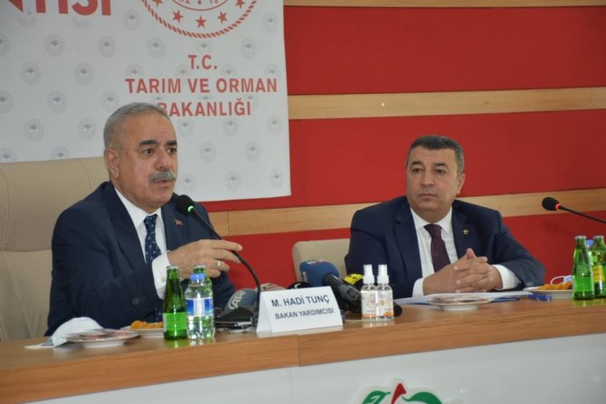 Zor bir döneme girildiğini ve bundan sonra küresel iklimin ülke üzerindeki etkilerinin yaşamaya devam edileceğini de ifade eden Tunç, "Dolayısıyla bunun ön hazırlığını yapmak üzere aslında yıllardır hazırlıklar yapılıyor ama şimdi kendisini ciddi hissettirmeye başlayınca tedbirlerin daha da ciddiyetle ele alınması ihtiyacı hasıl oluyor. Bu noktada bunu da beraberce tartışalım. Sizlerden beklenti ve taleplerinizi alıp, değerlendirelim istiyoruz. Malatya'daki tarımsal hasılayı daha nasıl büyütebiliriz, halkımızın, milletimizin refahını daha nasıl artırabiliriz, bu konuyu hep beraber tartışacağız. Sayın Cumhurbaşkanımızın bir talimatı olmuştu. Cumhurbaşkanımız, ekilmedik bir karış toprak dahi bırakamamak gibi bir görev ve ödevle bizi sorumlu tuttu. Sadece Bakanlığı değil, STK'larımızı da görevlendirdi. Dolayısıyla bir karış toprağı boş bırakmamak üzere bütün topraklarımızı, arazilerimizi nasıl işleyebiliriz, bu arazilerimizi nasıl suyla nasıl buluşturabiliriz ve kamu kaynaklarından vatandaşlarımızı daha nasıl yararlandırabiliriz. Konularını beraberce tartışacağız. Ümit ediyorum ki, verimli çalışma olacak" diye konuştu.
