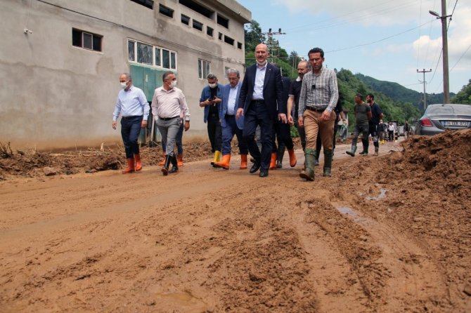 Bakanlar selin vurduğu Çayeli ilçesinde incelemelerde bulundu