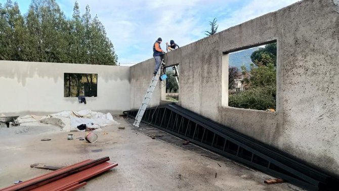 Köşk Belediyesi tarafından Baklaköy Mahallesi'nde yapımı devam eden mahalle düğün salonunda sona gelindi. Önümüzdeki düğün sezonuna yetiştirilmesi amacıyla çalışmalar aralıksız devam ederken, düğün salonu yapımında yüzde 85 oranında sona yaklaşıldı. "Her şey Köşk için" sloganıyla hizmetlerine devam ettiklerini ifade eden Köşk Belediye Başkanı Nuri Güler; "Mahalle düğün salonu yapım çalışmaları aralıksız devam ediyor. Baklaköy Mahallemizde bulunan düğün salonunda ekiplerimiz, sıvama ve elektrik tesisatı döşeme çalışmasını tamamladı. Bir yandan da trapez saç çatı kaplama çalışmasını sürdürüyor. Ekiplerimiz, akabinde boya, badana işlerini tamamlayarak Baklaköy Düğün Salonu'nu en kısa zamanda Baklaköylü hemşehrilerimizin hizmetine sunacağız" dedi.