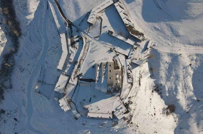Beyaz örtüyle kaplanan müze ve çevresinin havadan görüntüleri görenleri mest etti.