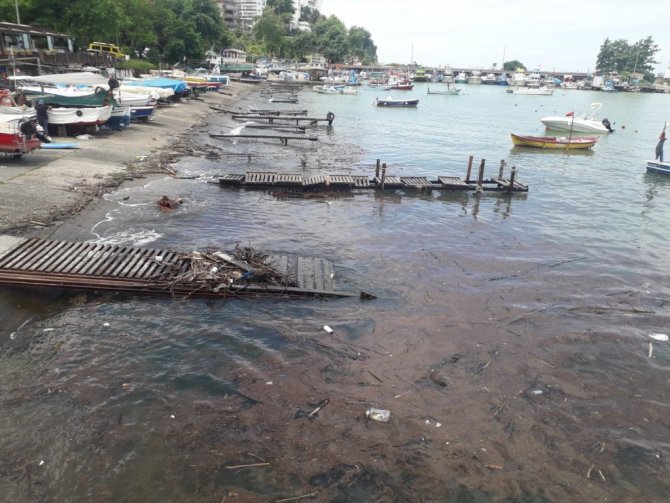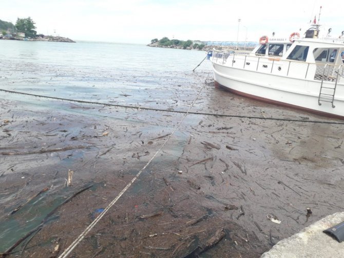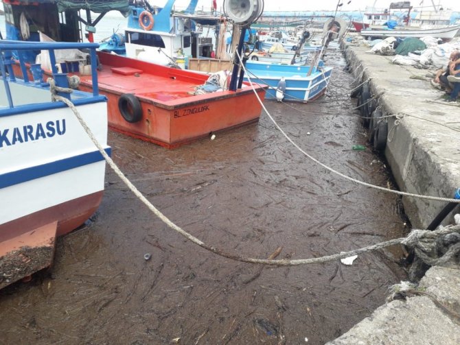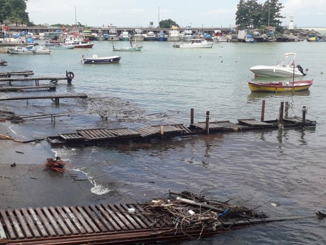 Düzce'nin Akçakoca ilçesindeki balıkçı barınağı, derelerin taşması sebebiyle ağaç parçaları ve moloz yığınlarıyla doldu.