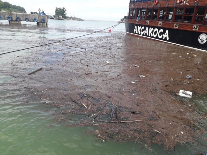 Dün Düzce'de etkili olan kuvvetli sağanak yağış, günlük yaşamı olumsuz etkiledi. Akçakoca ilçesinde de kuvvetli yağış sebebiyle derelerin taşması ve sele dönüşmesiyle birlikte Karadeniz'e gelen ağaç ve moloz parçaları balıkçı barınağının içini doldurdu.