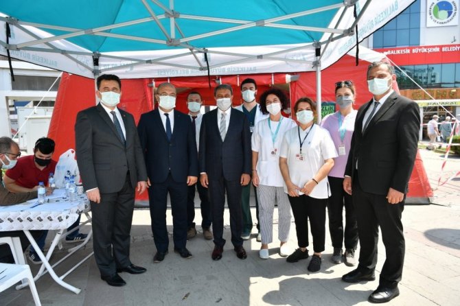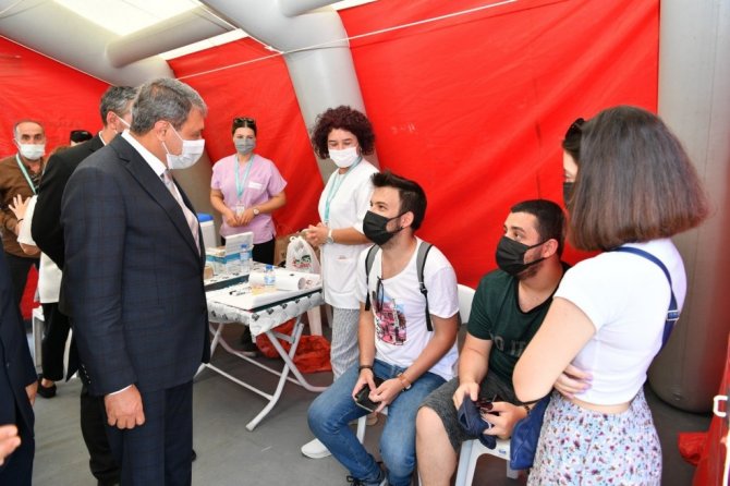 Toplu Taşıma Merkezinde kurulan ve vatandaşların randevusuz bir şekilde aşı yaptırabildiği çadırda, Melek Sarıarmut'a 1 milyonuncu aşı yapıldı. Salgında en güçlü silah olan aşılama oranının yükseltilmesi için çalışmaların devam ettiğini belirten Vali Şıldak, "Koronavirüsle mücadelede Balıkesir'de bir taraftan tedbirlerin uygulanması konusunda hassasiyet gösterilirken, diğer taraftan da en güçlü silah olan aşılama oranlarını yükseltmek konusunda büyük bir gayret içerisinde çalışıyoruz. Sağlık Müdürlüğümüzün bütün personeli bu konuda fedakarca uzun bir çalışma maratonu ortaya koydular. Şu an İl merkezinde bulunan aşı istasyonundayız. Burada oluşturulan çadırda randevusuz aşı uygulanıyor. Farklı İlçelerimizde 9 noktada aşı çadırı uygulamalarımız var. Aşılanma oranı olarak Balıkesir şu ana kadar yüksek bir performans gösterdi. İlk doz aşıda nüfusa oranla ülke genelinde 6. sırada, her iki doz aşı da ise 3. sıradayız. Vatandaşlarımızı gösterdikleri duyarlılık için tebrik ediyorum. Sonbahara rahat bir şekilde ulaşabilmek, yaz aylarını rahat geçirebilmek için aşılama oranını daha da yükseltmemiz gerekiyor. Bütün vatandaşlarımızı, bugünden itibaren 18 yaşa düşen bütün yaş gruplarını, meslek gruplarını bir an önce randevu alarak aşı merkezlerimize, aile hekimliklerimize ve hastanelerimize bekliyoruz" diye konuştu.