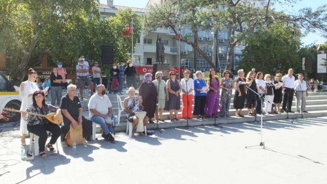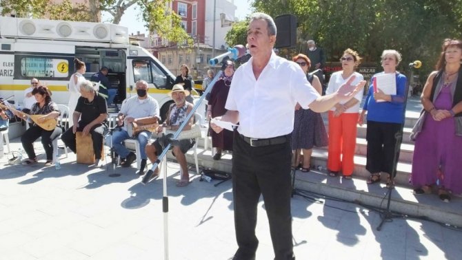 Ayvalık'ın Küçükköy Mahallesinde iki yıl önce kurulan Küçükköy Halk Müziği Derneği Korosu, pandemi döneminde ara verdiği çalışmalarına tekrar başlarken, Edremit Körfezindeki ilçelerde konserler vermeye başladı. İlk konserini Burhaniye'de veren koro, büyük ilgi görürken, konserlerin diğer ilçelerde devam edeceği açıklandı. Konserlerin devam edeceğini anlatan Küçükköy Halk Müziği Derneği Başkanı Nezihe Baltacı, "Derneğimizi 2019 yılı sonlarına yakın kurduk. Kuruluşundan itibaren pandemi dönemine rast geldiği için çok önemli bir etkinlikte bulunamadık. Ancak, açık havalarda çalışmaya gayret ettik korumuzla beraber. Bu yaz başından beri düzenli olarak çalışıyoruz. Bu günden itibaren Körfez ilçelerinde halkla bütünleşmek, Türk Halk Müziğini halka sevdirmek, beraber olmak ve iç içe söylemek amacıyla bir yola çıktık. Bu gün konserlerimizin ilkini Burhaniye meydanında gerçekleştiriyoruz. Bundan sonra, kısmet olursa yarın Gömeç'teyiz. Bir sonraki gün Çarşamba günü Edremit'te olacağız. Cuma günü de Havran'da olacağız. Halk müziği söylüyoruz. Türk Sanat Müziğini sevenler için de az da olsa sanat müziği eserlerini koymaya gayret ettik. Kısaca, bütün müzik severleri bu konserlerimize ve etkinliklerimize bekliyoruz. Teşekkür ederim" dedi. Koro üyelerine teşekkür eden Burhaniyeli İş İnsanı Necmettin Gedikoğlu da, " Kovitli günlerde buraya gelip konser verdikleri için Küçükköy Hak Müziği Derneğine çok teşekkür ederiz. İnşallah, devamı olur. Kulaklarımızın pası da silinmiş oldu. Çok da güzel konser oldu. Çok teşekkür ederiz" dedi.