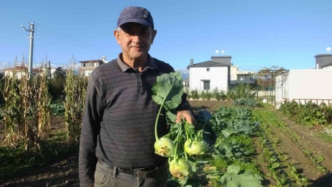 Emekli coğrafya öğretmeni Basri Şahin, emekli olduktan sonra değişik bitkiler yetiştirmeye başladı. Oturduğu Denetko Tatil Sitesi yanında boş arsayı hobi bahçesi haline getiren 60 yaşındaki Basri Şahin, değişik bitki türlerinin haricinde sıra 5 yıl önce başladığı alabaş turbu üretiminde başarı sağladı. 5 yıl önce ekmeye başladığı turbun da başarılı olduğunu anlatan Şahin, alabaş turbunun vitamin ve mineral açısından zengin bir sebze olduğunu kaydetti. Basri Şahin, turbun tansiyon ve kalp damar rahatsızlıklarının önlenmesinde faydalı olduğunu söyledi.