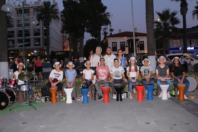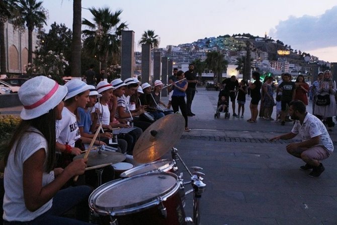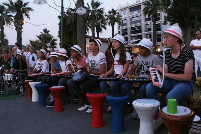Balıkesirli ortaokul öğrencilerinden Kuşadası sokaklarında ritim rüzgarı