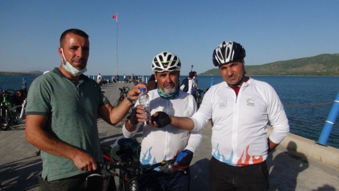 Balıklıgöl'den aldıkları suyu Van'ın Edremit ilçesinde Van Gölü'ne dökeceklerini belirten URBİT Başkanı Mehmet Aslan da, "Bu gece Tatvan'da konaklayacağız ve yarın da bisiklet sürerek 140 kilometre yol gideceğiz. Amacımız Van Gölü'nün güzelliğine ve çevre temizliğine dikkat çekmektir" dedi.