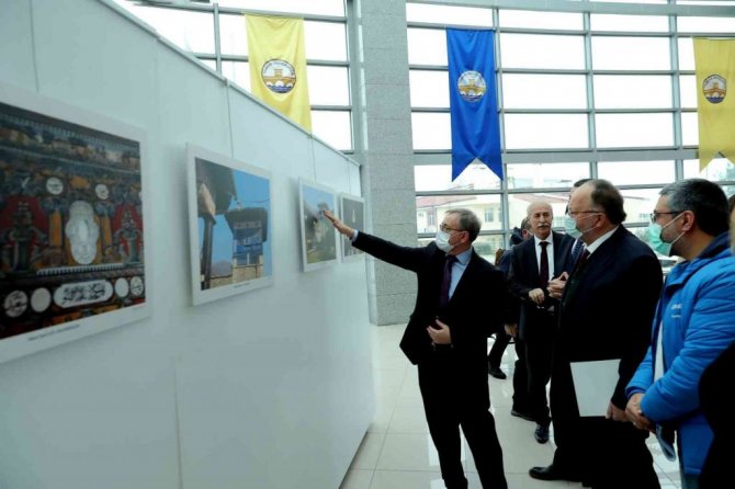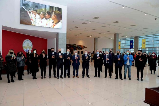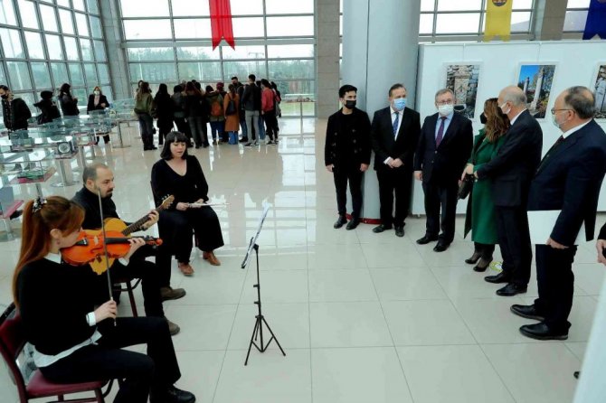 Sergi açılışı öncesinde Doç. Dr. Mustafa Hatipler, İsmet Keten ve Rektör Prof. Dr. Erhan Tabakoğlu bir açılış konuşması gerçekleştirdi.