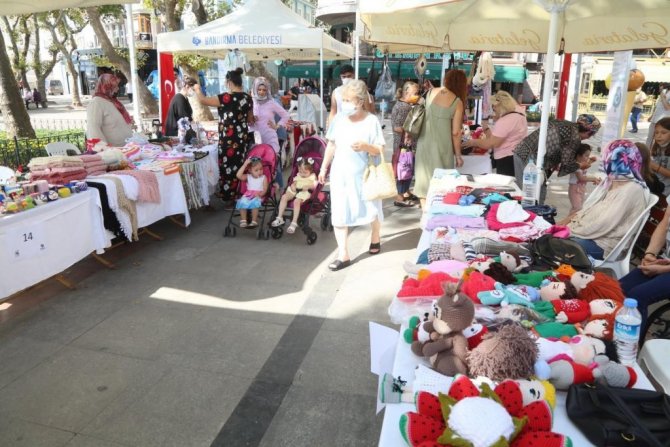 Festivale katılan bayanlar arasında yer alan Muazzez Palta, "Pandemi sürecinde kadınlarımız evlere kapandılar. En zorluk çeken ev hanımlarımızdı. Bu kadınlar üreterek, el işi yaparak bu süreci atlatmaya çalıştılar. Yaptıkça evlerde üretilen işler birikti. Böyle bir festivalin yapılmasından ötürü Belediyemize ve Kent Konseyimize teşekkür ediyoruz. En azından kadınların el emeğinin biraz da olsa değerlendirileceğine inanıyoruz. Çünkü kadınlar ekonomik yönden ne kadar güçlü olurlarsa erkek şiddetine o kadar karşı koyabilecek kapasitede oluyorlar. Kadınların kazanması, üretmesi daha büyük daha geniş festivallerde buluşmak isteriz" dedi.