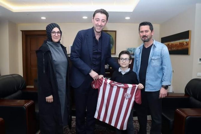 Bandırma Hürriyet İlköğretim Okulu öğrencisi Eyüp Ensar Yıldız, sosyal medya üzerinden ulaştığı Belediye Başkanı Av. Tolga Tosun'dan Bandırmaspor forması rica etti. Genç Bandırmasporlu taraftarını belediyeye davet eden Başkan Tolga Tosun, neşeli ve güzel bir sohbetin sonunda, maçları takip ederken derslerini de aksatmaması koşuluyla Eyüp Ensar Yıldız'a Bandırmaspor forması hediye etti. Başkan Tosun, forma hediyesi sonunda bir değerlendirme yaparak, " Şehrimizin gururu Bandırmaspor'un, hak ettiği ve çok yakışacağı Süper Lig'e yükseleceğine yürekten inanıyor, başarılar diliyoruz" dedi.