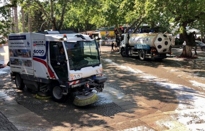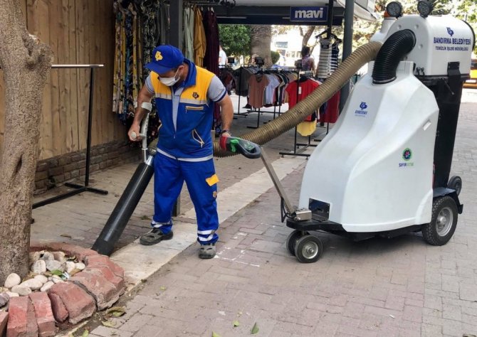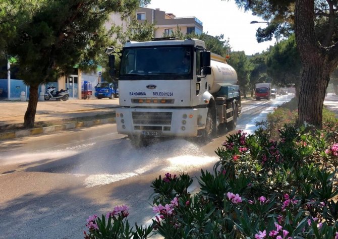 Bandırma Belediyesi, yaz dönemi nedeniyle turizm yoğunluğunun arttığı Erdek'te temizlik çalışmalarına destek verdi. Ekiplerin yerine getirdiği çalışmalar kapsamında Erdek'in dört bir tarafı Bandırma Belediyesi temizlik ekipleri tarafından köşe bucak temizlendi. Yapılan temizlik çalışmalarında Erdek'in tüm ana caddeleri, sahil boyunun tamamı, Belediye Meydanı, Anıtlar ve çocuk parkları önce süpürge araçlarıyla temizlendi. Ardından da köpüklü dezenfektanla tüm bu alanlar yıkanarak temiz bir hale getirildi.
