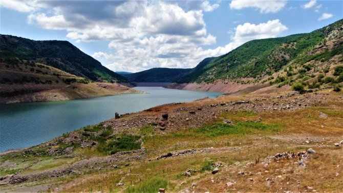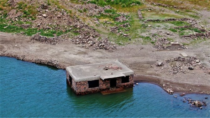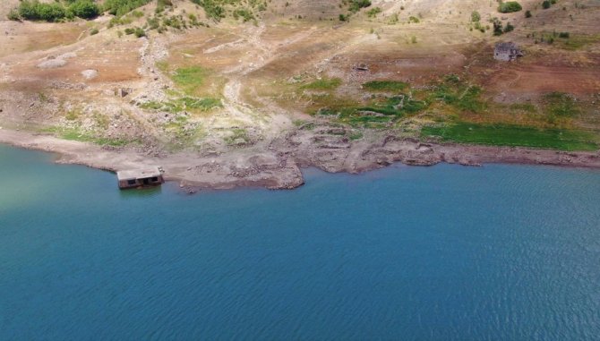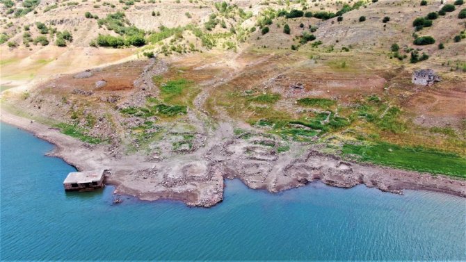 Baraj suları çekildi, 29 yıl önce sular altında kalan köy gün yüzüne çıktı
