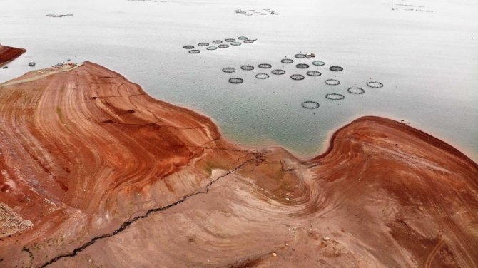 Tokat'ta baraj gölünde su seviyesinin düşmesi alabalık çiftliklerini tehdit etmeye başladı.