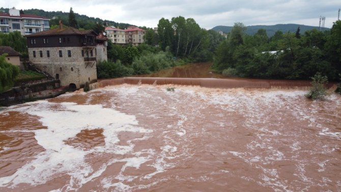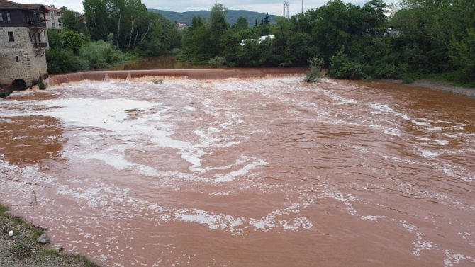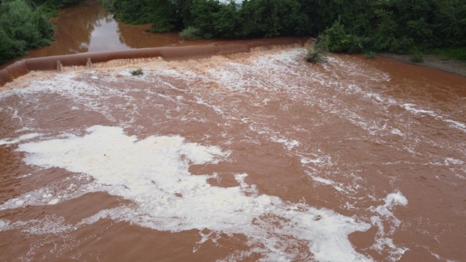 Bartın kent merkezinden geçerek Karadeniz'e dökülen Bartın Irmağı'nda beyaz köpükler oluştu.