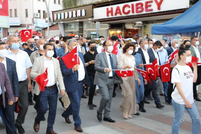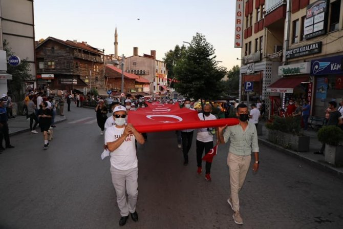 Bartın'da 15 Temmuz etkinlikleri "15 Temmuz Demokrasi Ve Milli Beraberlik Yürüyüşü" ile başladı. Kemer meydanında buluşan vatandaşlar ellerinde Türk bayrakları ile 15 Temmuz etkinliklerinin gerçekleşeceği Cumhuriyet Meydanına yürüdü. Yürüyüşte gençler tarafından dev Türk bayrağı taşındı.
