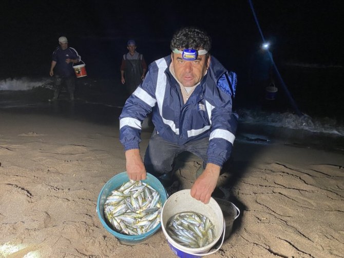 Uzun yıllar denizcilik yapan Ramazan Şen ise, "Havanın birden soğuması ve poyraz esmesiyle beraber balık derinde daha soğuk olduğu için sığ sulara, kumlara doğru gelip kendini dışarıya attı yani. Bir nevi de şoklanmış oldu. O yüzden. İki akşamdır poyraz esiyor, havada serin olduğu için deniz tekrar balık aynı mesafede devam ediyor yani. Genelde aynı saatlerde oluyor. Ortalama ben iki kovamı doldurdum. 40 kiloya yakın balık yaptım yani iki saatte. Çok nadir görünen bir şey. Sorduğumuzda 20 yılda bir olduğu söyleniyor. Bu sene bize nasip oldu. Vatandaşlar da balığa doymuş olacak inşallah" diye konuştu.