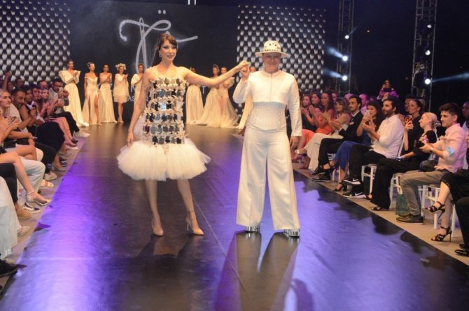 Bartın'a özgü "oyulgama" el işçiliği sanatı ile tasarlanan kreasyonların tanıtıldığı defilede ünlü mankenler podyuma çıktı.