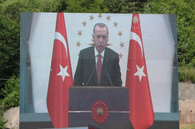 Bartın'daki yol açılışına Ankara'dan video konferans yöntemiyle bağlanan Cumhurbaşkanı Recep Tayyip Erdoğan, güzergahı kullanan vatandaşların sıkıntılarını çözmek amacıyla 90 kilometrelik yolu 75 kilometreye düşürerek yeniden projelendirdiklerini ifade etti.