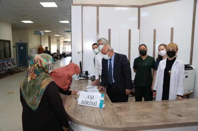 Başhekim Aykal aşı için sıraya giren vatandaşlarla sohbet etti