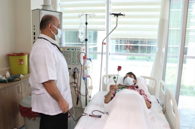 Samsun Vezirköprü İlçe Devlet Hastanesinde görevli sağlık çalışanları diyaliz hastalarının vakitlerini daha neşeli geçirmeleri için onlara piyona...