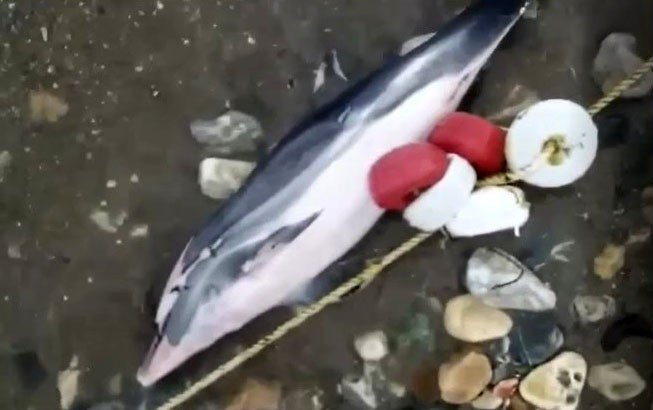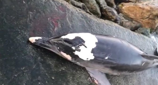 Bursa'nın Mudanya ilçesi Güzelyalı sahilinde 2,5 metre uzunluğunda ölü yunus sahile vurdu. Başından yaralı olan yunusun zıpkınla vurulmuş olabileceği tahmin edilirken, o anlara kaydedenler ise bunu yapanların yanına kalmayacağını söyledi. Ölü yunusun kaldırılması için Mudanya Belediyesi Temizlik İşleri Müdürlüğü görevlilerine haber verildi.