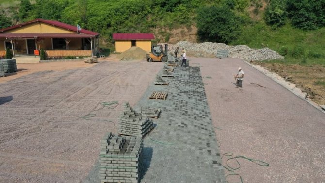 Başiskele Belediyesi, ilçede ulaşım hizmetlerine destek olmak amacıyla toplu ulaşım garajlarını parke taşlarıyla kaplıyor.