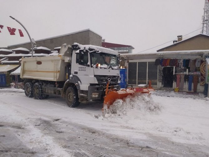 Başkale'de dün gece başlayan kar yağışı hayatı olumsuz etkiledi. İlçe merkezinde 20 santimetre olan kar kalınlığı, yüksek kesimlerde ise 50 santimetreye kadar ulaştı. İlçeye bağlı 42 yerleşim yerinin yolu ulaşıma kapanırken, Van Büyükşehir Belediyesi ve Başkale Belediyesi ekipleri de kapanan yolların tekrar ulaşıma açılması için çalışma başlattı.