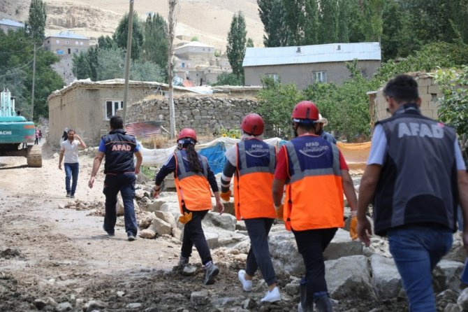 Van'ın Başkale ilçesindeki sel ve su baskınları sonrası bölgedeki müdahale ve iyileştirme çalışmaları eş zamanlı yürütülüyor.