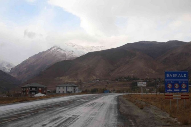 Van'ın Başkale ilçesinde bugün etkili olan yağmur, yüksek kesimlerde yerini kar yağışına bıraktı.