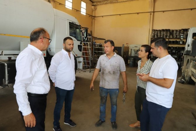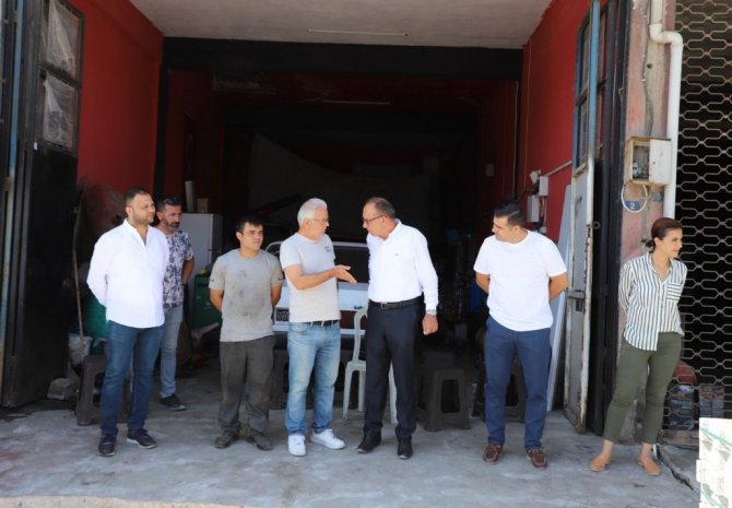Her fırsatta vatandaşlarla bir araya gelen, ekiplerin merkez ve kırsal mahallelerde sürdürdüğü çalışmaları yakından takip eden Turgutlu Belediye Başkanı Çetin Akın tüm gününü sahada geçirdi. Güne ilk olarak Erbiller Sanayi Sitesinde başlayan Başkan Çetin Akın ve Başkan Yardımcıları Fırat Honaz, Ahmet Daşkan ve Evren Erbaş Ser, Erbiller Sanayi Sitesinde yakında tamamlanacak olan yol yenileme çalışmalarını inceledi ve sanayi esnafıyla bir araya geldi. Başkan Çetin Akın, Erbiller Sanayi Sitesindeki incelemelerinin ardından Soğuk Hava Deposunun yerine yapılacak olan Sanayi Çarşısı proje alanına giderek çalışmaların son durumunu başkan yardımcıları ile birlikte değerlendirdi.