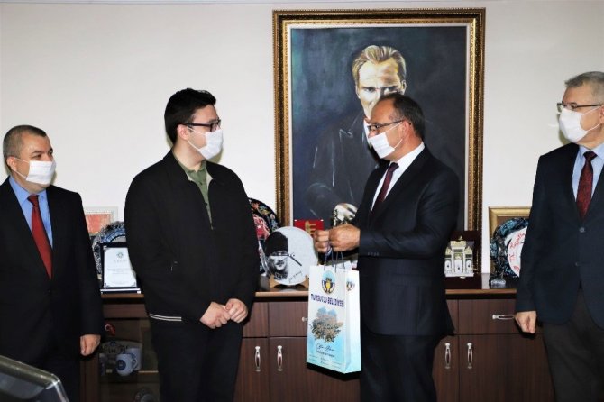 Başkan Akın TÜBİTAK birincisi Ziya Yıldız’ı ağırladı