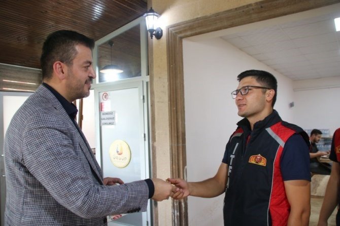 Başkan Aktürk, yemeğin ardından İtfaiye personelini gösterdikleri özveri ve azimleri nedeniyle de ödüllendirdi.