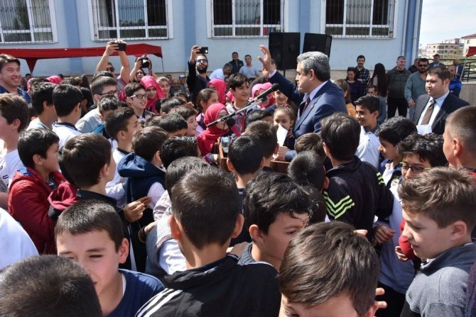 Açılış duasının okunmasının ardından kurdele kesildi. Öğrencilerle birlikte halı sahada top oynayan Alıcık, çocuklarla sohbet edip hatıra fotoğrafı çekildi.