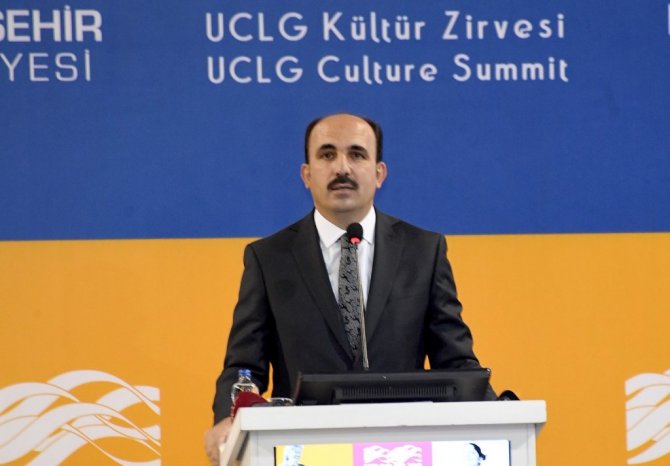 Kültürün sürdürülebilir kalkınma amaçlarının sac ayaklarından birisi olduğuna değinen Başkan Altay, "Yaşadığımız her an, her dakika, içerisinde yoğrulduğumuz kültüre göre şekillenmektedir. Bu nedenle geçmişten gelen kültürel mirasımızı korumalı ve yeni nesillere bu mirasımızı aktarmalıyız. Küreselleşen dünyada özümüzü yansıtmasının yanında yaşanan her türlü soruna karşı bir çözüm olan kültür, toplumların olmazsa olmazıdır. Tüm dünya olarak son iki yıldır yaşadığımız zorlu süreç bize doğaya, çevreye kültüre saygılı olmanın önemini acı bir şekilde hatırlatmıştır. Pandemi sürecinin bizlere öğrettiklerini aklımızın bir köşesinde tutarak, birlikte yaşamak ve sorunların üstesinden gelmek için kültürü tam boyutlarıyla değerlendirmeliyiz. Sorunların üstesinden gelmek için ortak çalışma, ortak düşünme, iyi tecrübelerin paylaşımı gibi faaliyetleri artırmalı, kültürü şehirlerimiz arasında, insanlarımız arasında daha çok geliştirmeliyiz. UCLG çatısı altında bu hedefleri gerçekleştirmeye çalışıyoruz" diye konuştu.