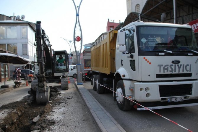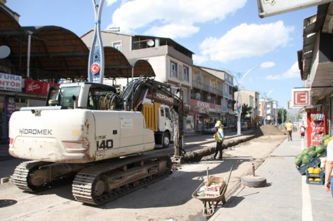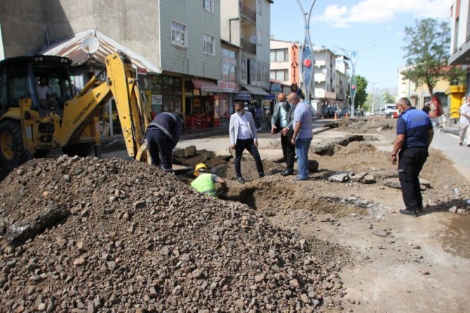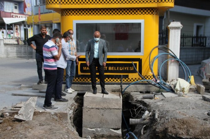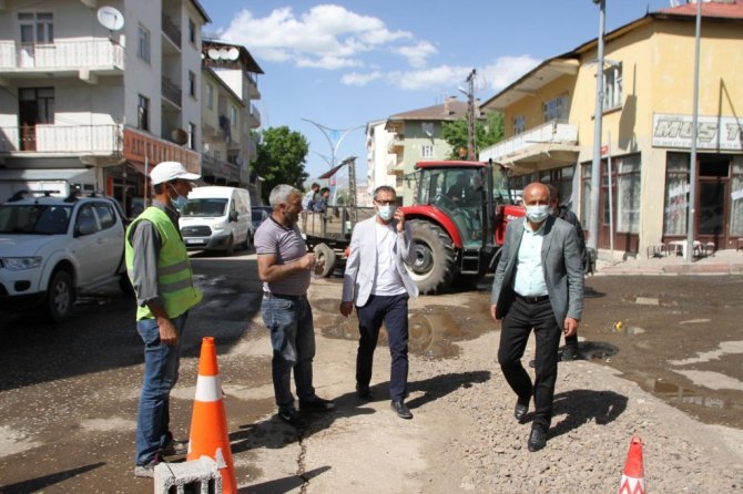 Muş'un Malazgirt Belediye Başkanı Cengiz Altın, yürütülen kanalizasyon, yol açma ve içme suyu şebeke hattı çalışmalarını yerinde inceledi.