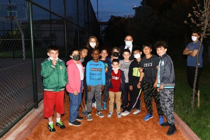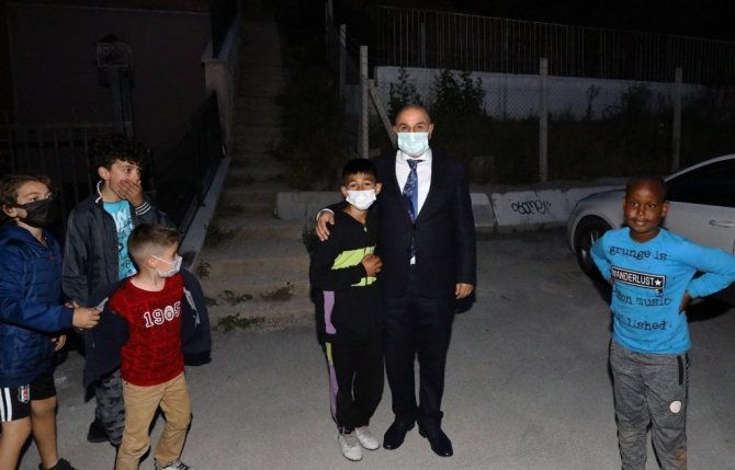 Keçiören Belediye Başkanı Turgut Altınok, Keçiören'in Etlik Mahallesi Şehit Üsteğmen İbrahim Abanoz Parkı'nda akşam saatlerinde gerçekleştirdiği denetimler sırasında çocuklarla buluştu.