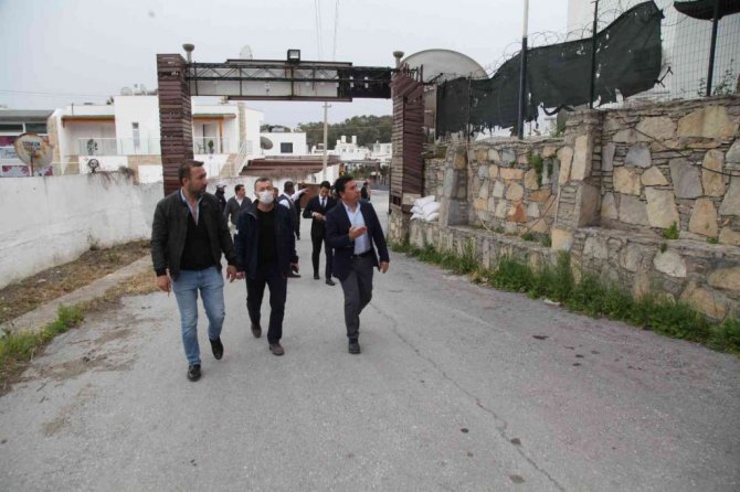 Başkan Aras, Muhtarlar Derneği Başkanı ve Cumhuriyet Mahallesi Muhtarı Ahmet Cemil Gündüz ve Gümbet Mahalle Muhtarı Ali Haydar Mansuroğlu ile birlikte, yaklaşan turizm sezonu öncesinde Gümbet Mahallesi'nde incelemelerde bulundu.