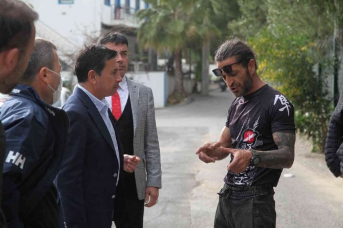 Bodrum Belediye Başkanı Ahmet Aras, mahalleleri ziyaret ederek incelemelerde bulunuyor.