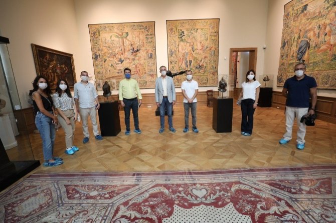 Sanat gezisinin ikinci durağı ise Sanat Urla oldu. 19. yüzyıl sonu 20. yüzyıl başı batı resim sanatının önemli temsilcilerinin eserleri ile 16. ve 17. yüzyıla ait zırh, miğfer ve kılıçların; Rönesans dönemi duvar halıları ile klasik dönem Anadolu halılarının sergilendiği sanat merkezini ziyaret eden Başkan Arda ve ekibi eserleri inceledi.