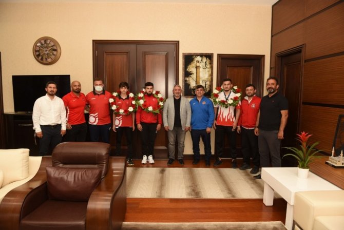 Çorum Belediye Başkanı Dr. Halil İbrahim Aşgın, Avrupa Dünya ve Avrupa şampiyonalarında derece yapan Belediye Gençlik ve Spor Kulübü sporcularını makamında ağırladı.