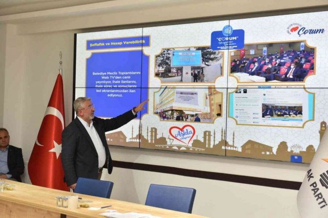 AK Parti Çorum İl Başkanı Av. Yusuf Ahlatcı başkanlığında gerçekleştirilen İl Yönetim Kurulu toplantısından sonra gerçekleştirilen sunuma Belediye Başkan Yardımcıları da katıldı. Sunum öncesi bir konuşma yapan AK Parti İl Başkanı Yusuf Ahlatcı, Belediye Başkanı Dr. Halil İbrahim Aşgın'ın yaptığı çalışmalarla Çorum'u şantiyeye çevirdiğini hatırlatarak, "Belediye Başkanımız Çorum'un ufkunu açıyor, itibarını artırıyor. Çorum'un güzelliğine güzellik katan çalışmalara imza atıyor. Hemşehrilerimizin yaşam kalitesini artırıyor. Yaptığı çalışmalarla Çorum'umuzu daha da güzelleştiriyor. Kendisine ve ekibine teşekkür ediyoruz." dedi.
